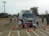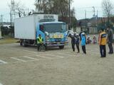 トラックの死角、内輪差などについて実際に体験しながら教えていただきました。