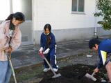 〇環境・飼育委員会は、サツマイモ掘りと花の苗植え準備をしていました。