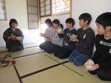 次に、抹茶のたて方を教わり、立てたお茶を友だち同士でふるまい合いました。作法は難しかったようですが、丁寧に教えていただき楽しくできました。